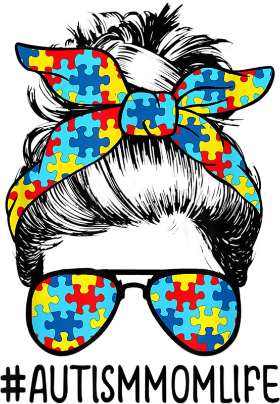 Autism Mom Life Messy Bun Sunglasses Bandana Mothers Day T Shirt